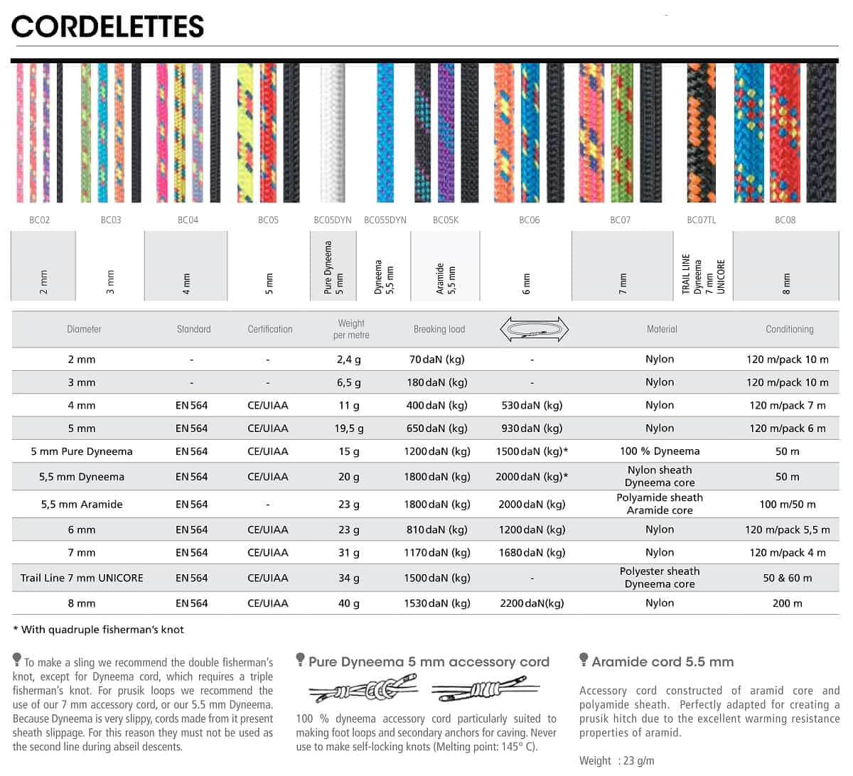 Beal Cordelette 8 mm Kletterseil aus Nylon mit einem Durchmesser von 8 mm, verkauft pro Meter. Seile dieses Durchmessers können verwendet werden, um einen Standplatz zu verstärken, sowie zum Transport von Material.
