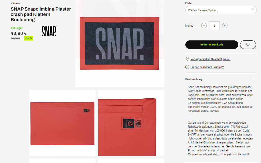 Das kleinste Crash-Pad von allen ist der Plaster von Snap, ein Sit-Start, den du immer dabei haben solltest, um mit sauberen Schuhen zu starten!