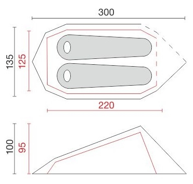Es verfügt über zwei Gewebe, eines aus Netz für eine hervorragende Belüftung und eines aus superleichtem Nylon mit einer hohen Wassersäule (2000 mm). Auch der Boden hat eine ausgezeichnete Wasserdichtigkeit von 5000 mm.
