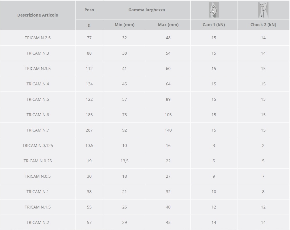 Dank seines besonderen Designs hat er 2 Einklemmmethoden, eine aktive und eine passive, die ihn perfekt für verschiedene Situationen machen, in denen kein anderes Gerät platziert werden kann. Sie sind ideal in horizontalen Rissen, in Taschen, in flachen vertikalen Rissen und, im Gegensatz zu Mehrfachklemmgeräten, auch in gefrorenen Rissen. Darüber hinaus können sie aufgrund ihrer hohen Festigkeit und Leichtigkeit auch als Standplatzanker verwendet werden.