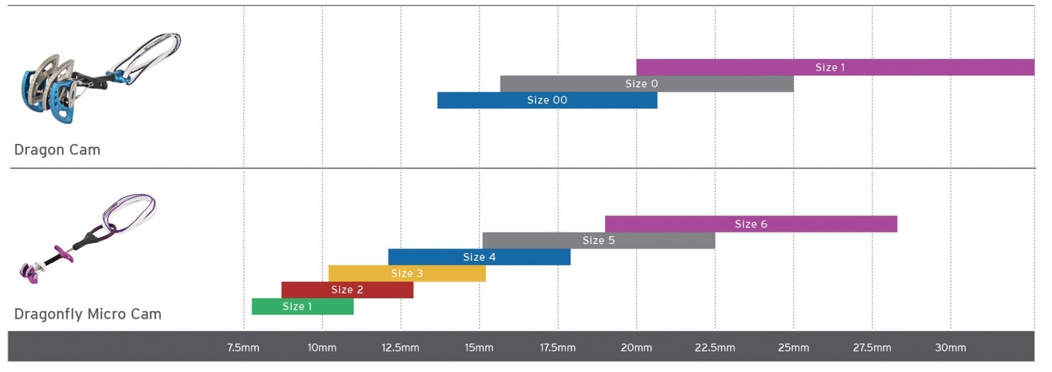 Es gibt viele Eigenschaften, die Dragonfly sicher und zuverlässig machen, angefangen von der rauen Oberfläche der Cams, die den Grip insbesondere auf glatten Felsen wie Schiefer und Kalkstein erhöht.