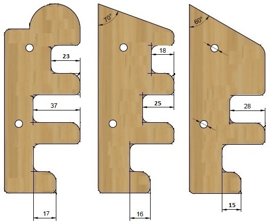 Zwei weitere Module haben einen schrägen Griff an der Oberseite, während die letzten beiden einen noch steileren Griff haben und über zwei Griffe statt der drei auf allen anderen Teilen verfügen. Du findest also den größten und den kleinsten Griff.