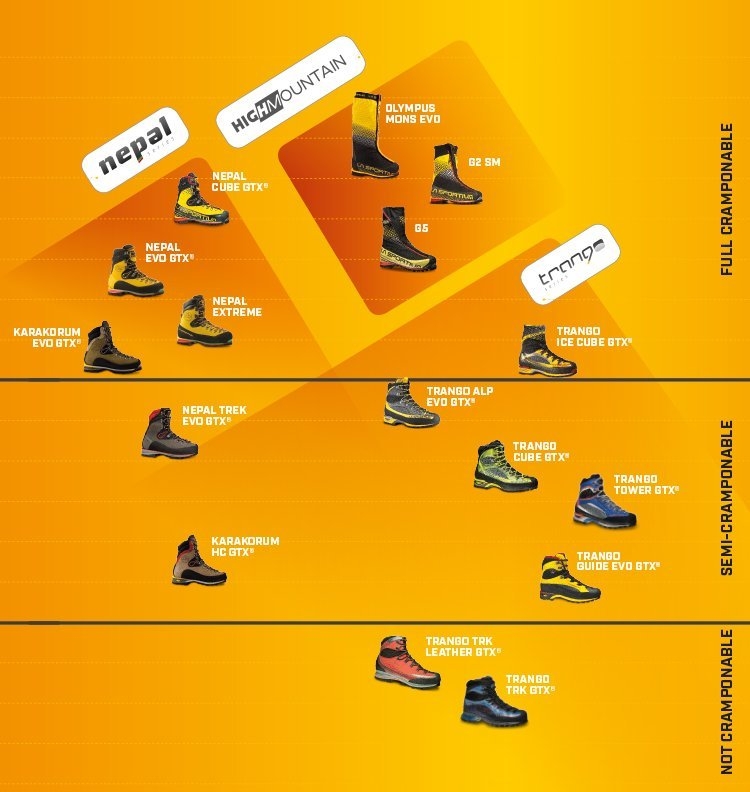 Wofür kann ich den Trango Tower GTX verwenden? Sicherlich für das Trekking, ein Schuh mit bequemer Passform, den man auch mehrere Stunden tragen kann. Ich kann ihn auch für das Alpinismus verwenden, dank des ramponierbaren Fersenbereichs, der mit halbautomatischen Steigeisen kompatibel ist, und schließlich ist er auch hervorragend für Klettersteige geeignet, mit einer bequemen und hervorragenden Kletterzone an der Spitze.