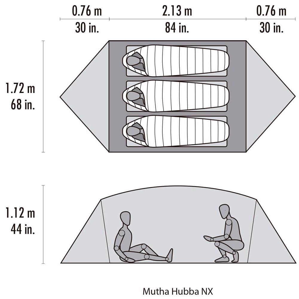MSR Mutha Hubba NX V2 ist ein Zelt, das es 3 Personen ermöglicht, bequem beim Trekking, Reisen oder Camping im Frühling, Sommer und Herbst zu übernachten.