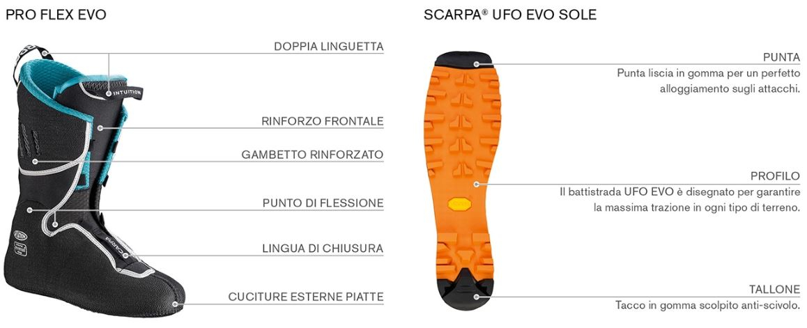 SCARPA F1 ist ein Skischuh für Skitouren, der für alle gedacht ist, die nach einem vielseitigen Schuh suchen, der für alle Disziplinen des Skitourengehens geeignet ist: Er ist sowohl für Aufstiege als auch für Abfahrten perfekt.